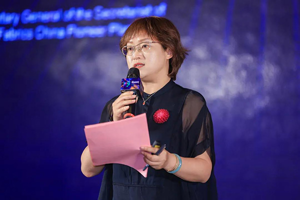 Chen Xiaoli, secretary-general of the Secretariat of the National Textile Development Base, discussed topics such as industrial chain cooperation mode, new fiber product development, functional fiber innovation practice, terminal field applications, fiber product industrialization and consumer demand leadership, and has a professional exchange with corporate guests from the fields of fiber, yarn, home textiles, and clothing.