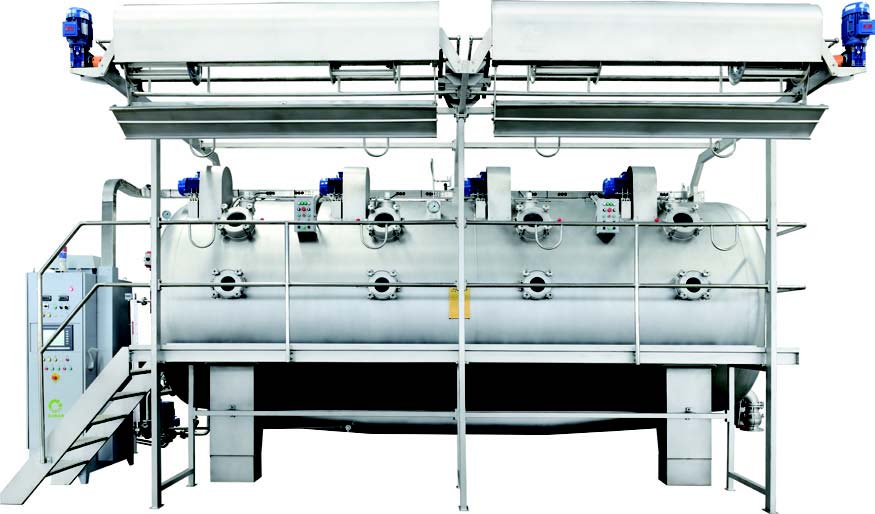 The stenter adopts a brand-new design concept, suitable for the finishing, dewatering, and setting of knitted cotton, rayon, woven fabrics, and stretch woven fabrics. Equipped with visual sensing technology, it enables features such as empty trolley alerts, fabric centering, real-time clap detection, and setting requirements of any width. The exhaust system utilizes an independent dual-air-duct technology, enhancing energy efficiency.